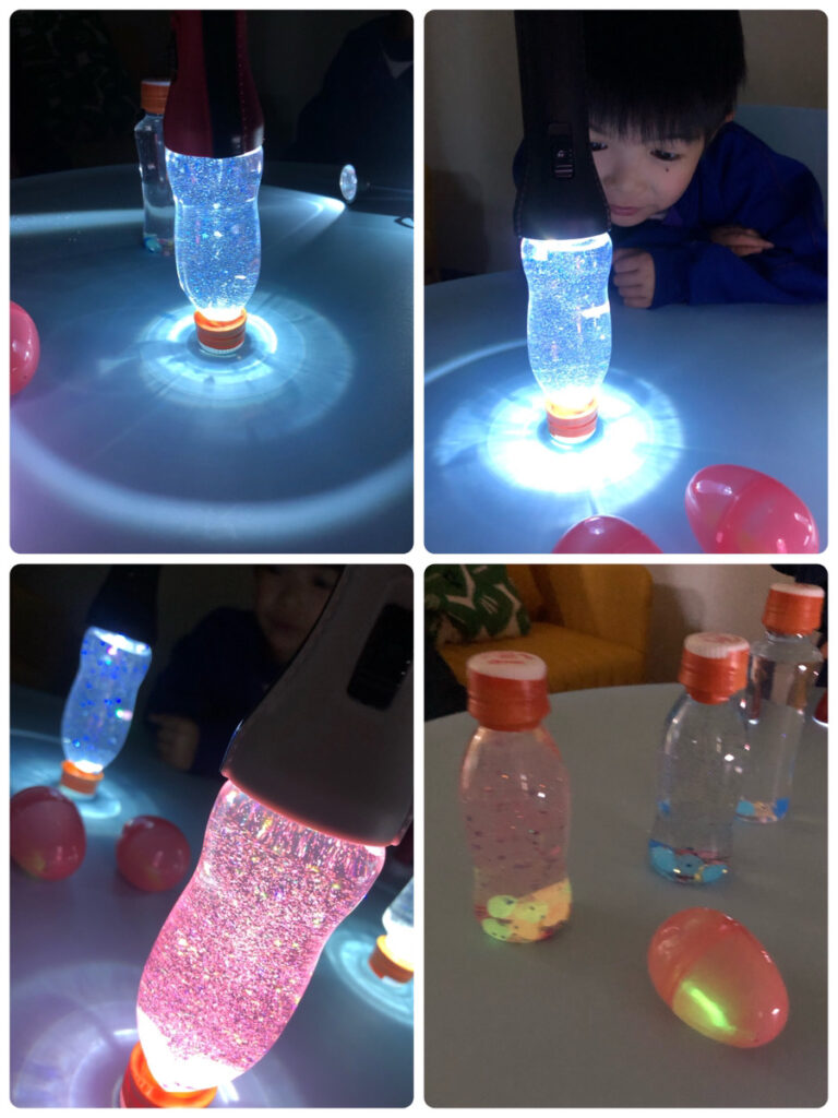 光遊びは光の動きや色の変化に触れることで、五感が研ぎ澄まされ、好奇心や探究心が育まれます。