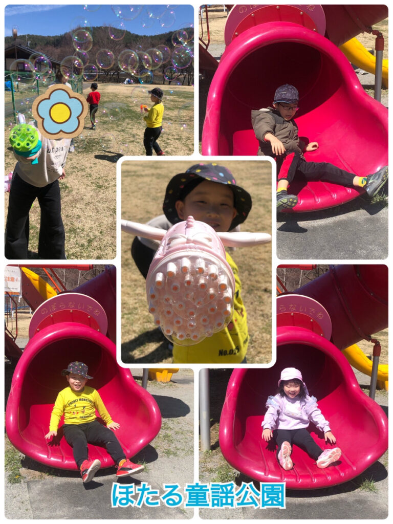 たくさんの遊具や、芝生でシャボン玉やフリスビーなど体を動かして遊びました 🌷